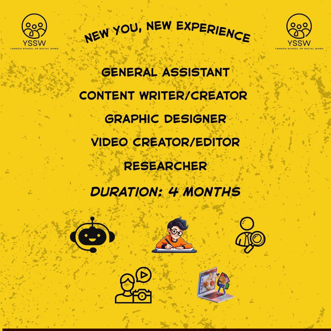 YSSW ,ဟာ လူမှုအကျိုးပြုလှုပ်ရှားမှုတွေမှာ ပါဝင်ကူညီပေးနေပြီး Social Work ဘာသာရပ်ကို သင်ကြားပေးနေတဲ့ ကျောင်းတစ်ကျောင်းဖြစ်ပါတယ်။ ဒါကြောင့် Social Work အကြောင်းကိုလေ့လာချင်တယ် ဒါမှမဟုတ် လူမှုအကျိုးပြုလုပ်ငန်းတွေကို စိတ်ဝင်စားတယ်ဆိုရင် သင်ဟာ YSSW ရဲ့ Volunteer အနေနဲ့ လူမှုအကျိုးပြုလုပ်ငန်းတွေမှာ ပါဝင်ကူညီနိုင်မှာ ဖြစ်ပါတယ်။ ဒီအခွင့်အရေးကနေ သင်ဟာ YSSW Volunteer Wave 11 ရဲ့ လူမှုအကျိုးပြု လုပ်ငန်းတွေမှာ ပါဝင်နိုင်ရုံသာမက၊ သင့်ရဲ့ အတွေ့အကြုံတွေကို တစ်ဆင့် မြှင့်တင်ပေးနိုင်မယ့် သင်ယူမှုအသစ်တွေကို ဒီ wave မှာ ရရှိနိုင်မှာဖြစ်ပါတယ်နော်။ ဒါကြောင့်မို့ သင့်အနေနဲ့ ဒီအခွင့်အရေးကို လက်လွှတ်မခံလိုက်ဖို့ တိုက်တွန်းလိုက်ပါရစေခင်ဗျာ။